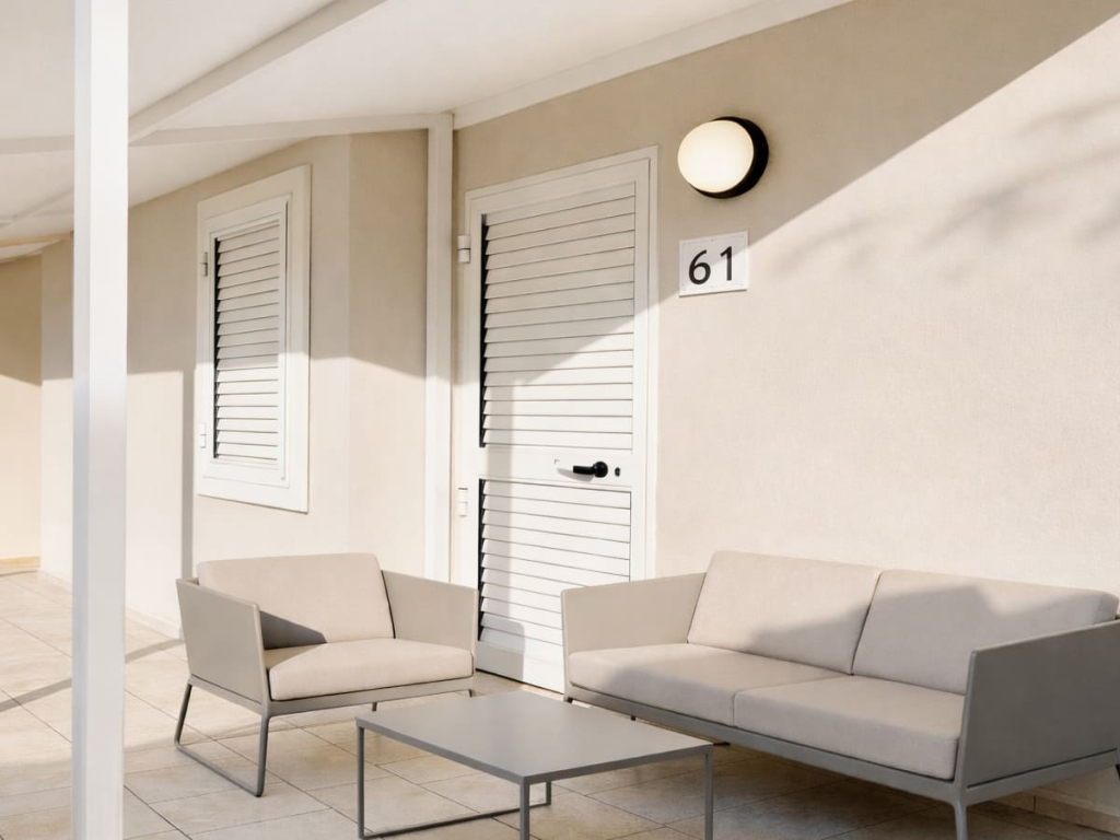 Camere: sistemazione in semplici e confortevoli bungalow in muratura recentemente ristrutturati e nuovamente arredati, dotati di ingresso indipendente, Tv, telefono, connessione Wi-Fi, aria condizionata, mini-frigo, cassetta di sicurezza e servizi privati con asciugacapelli. Si dividono in Classic, con camera matrimoniale e possibilità di 3° letto aggiunto; Bicamere Family formate da 2 camere classic comunicanti.Tutte le camere offrono ambienti luminosi e pratici, adatti a coppie, famiglie e gruppi di amici.